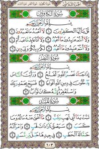 به گزارش پایگاه خبری تحلیلی «آوای هیرمند»، ترتیل صفحه ۶۰۳ قرآن سوره مبارکه الکافرون و سوره النصر و سوره المسد را بخوانید.